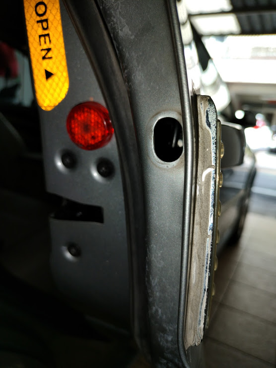 某天用遙控器上鎖時發現右後門還是可以從外面門把開啟,上網查有可能是右後門六角鎖故障,於是從蝦皮訂了一個副廠件800元),依照網路上找到的相關資訊來換換看